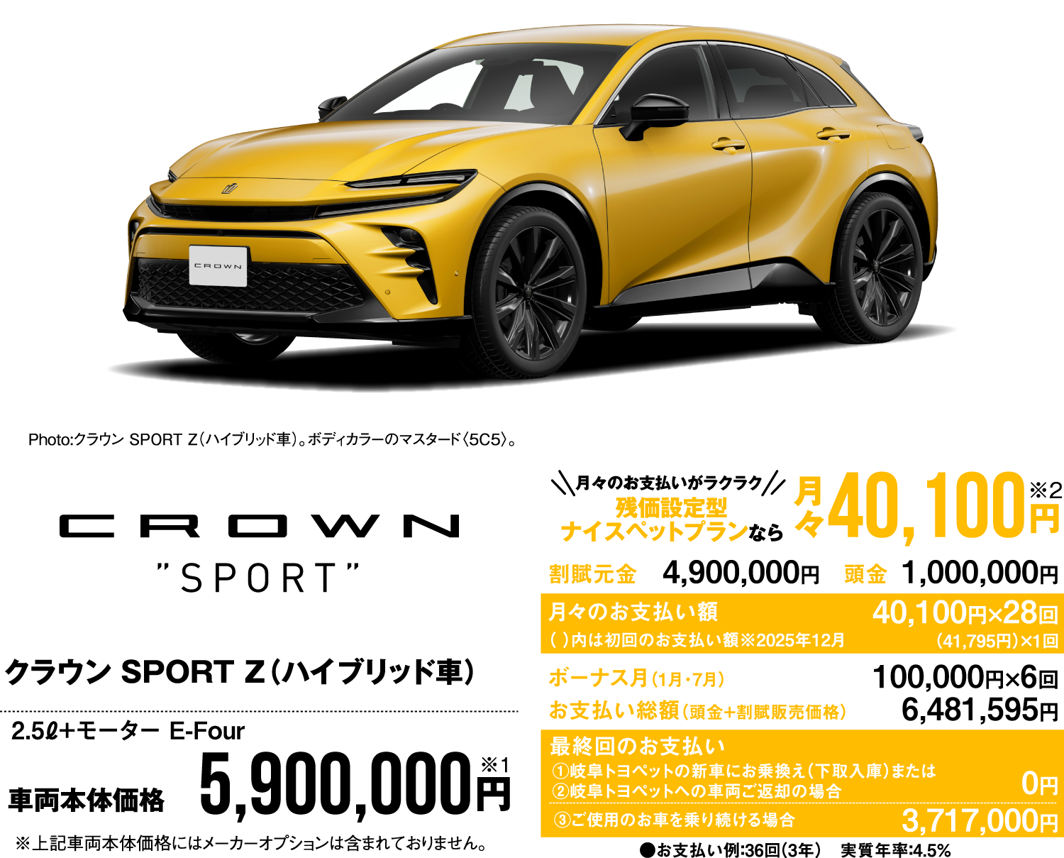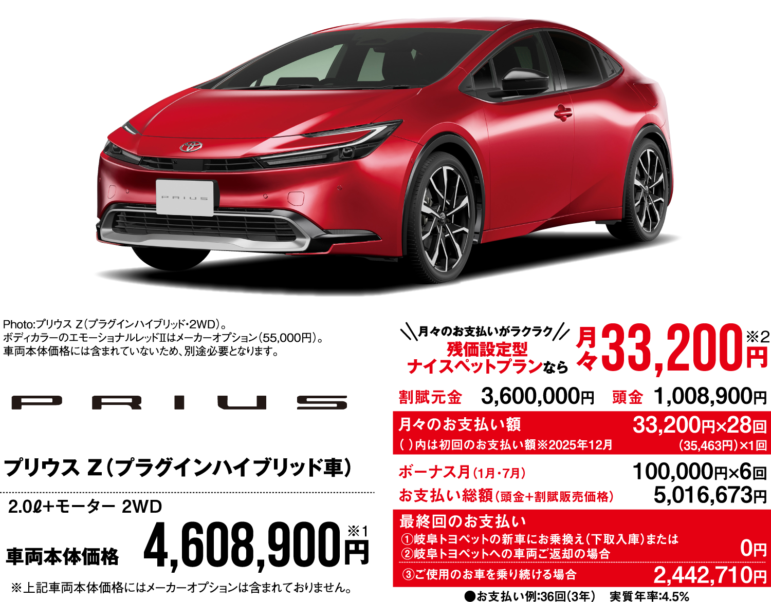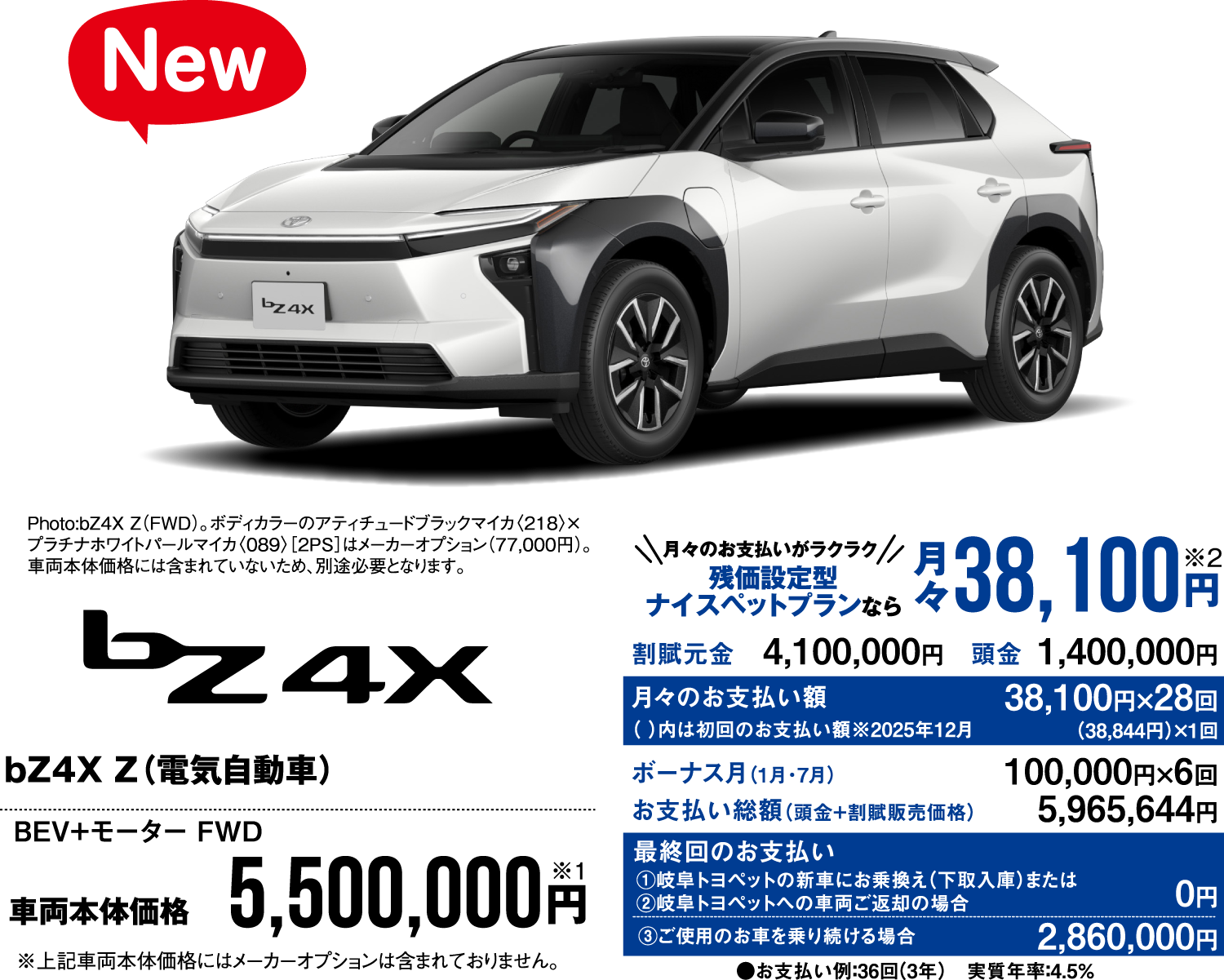 ※1.価格はすべて消費税(10%)込みの価格です。保険料、税金(消費税除く)、登録等に伴う費用、リサイクル料金は含まれておりません。別途必要となります。メーカーオプション、販売店装着オプションの価格は含まれておりません。車両本体価格のみでもご購入いただけます。(この内容は2025年10月現在のものです。)詳しくはスタッフにお尋ねください。