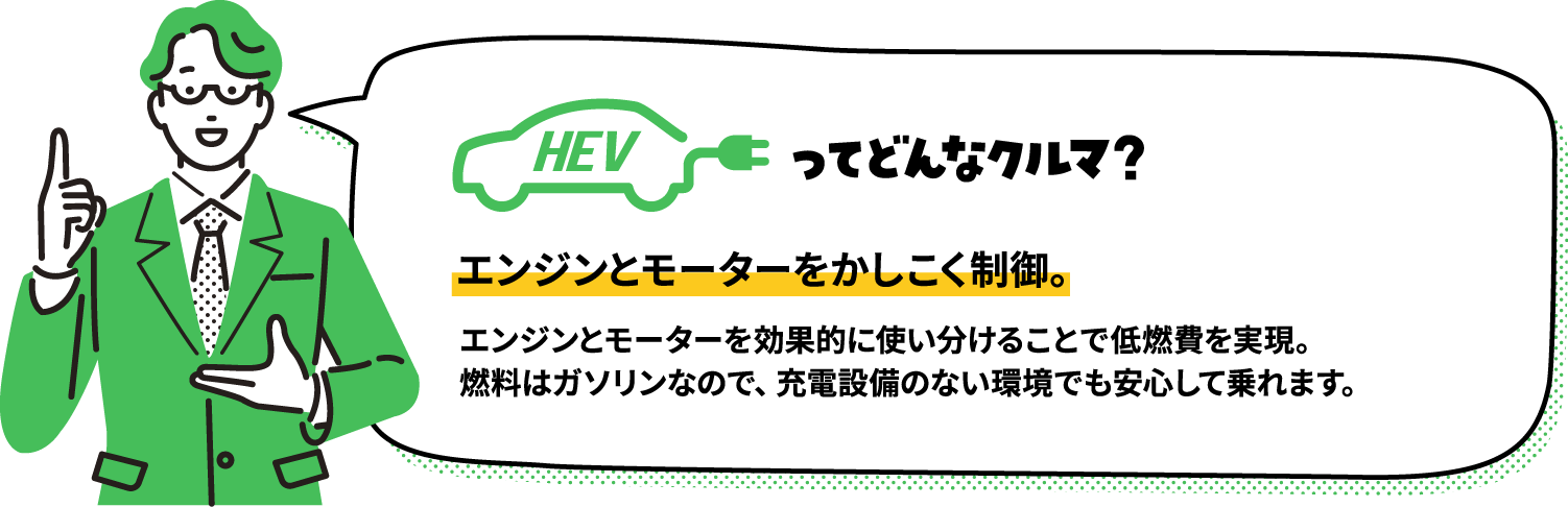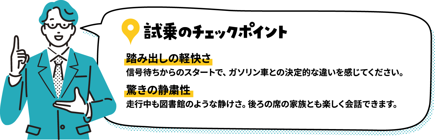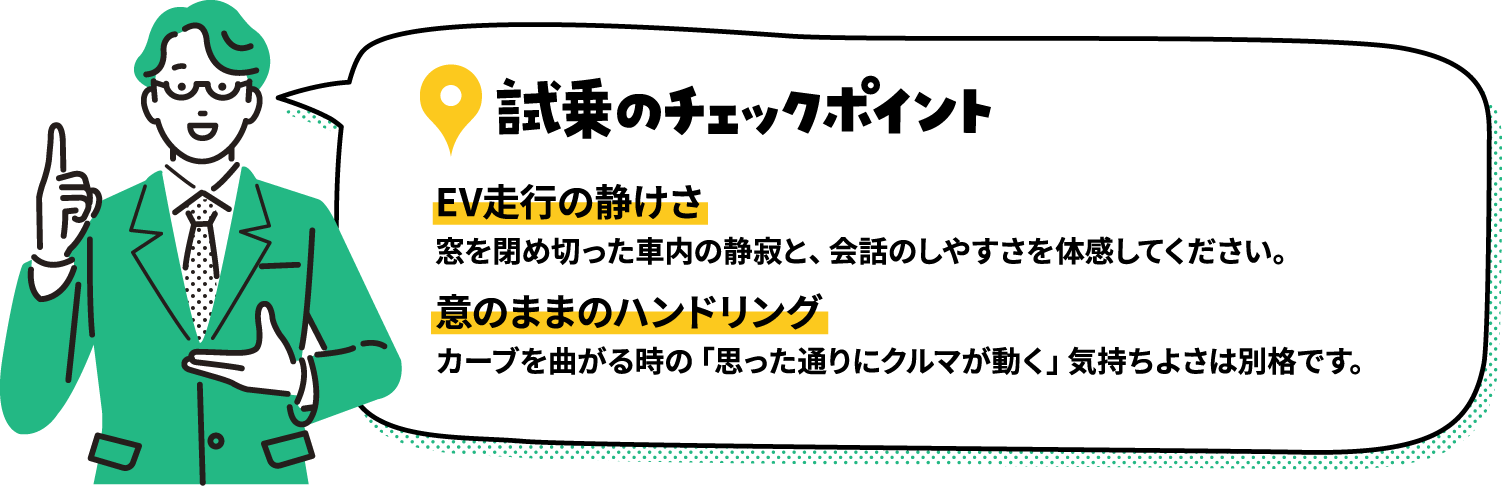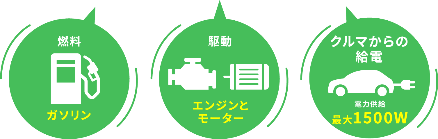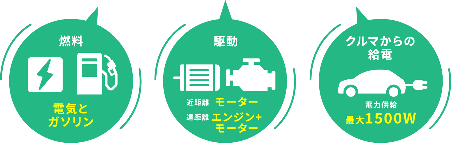 街中は電気(EV)で静かにスマートに。高速道路や遠出ではエンジンも使って力強く。